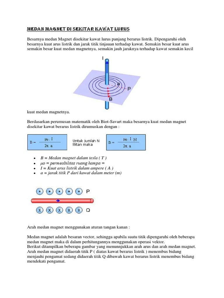 Induksi magnetik, induksi magnetik kawat lurus berarus, induksi magnetik pada pusat arus melingkar, induksi magnetik pada solenoida, induksi toroida.